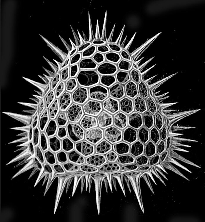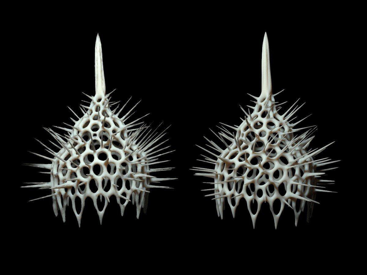 Губки интересны, однако, рассматривались ранее, так что упомянуть стоит прежде всего о лучевиках. Радиолярии — морские простейшие, в свою очередь состоящие из нескольких не родственных, объединённых только на основании внешнего сходства групп. И у некоторых радиолярий скелет, кстати, не кремниевый, а целестиновый — на основе стронция. Это крупные планктонные одноклеточные организмы, питающиеся благодаря хемо- или фотосинтезирующим бактериям-симбионтам.